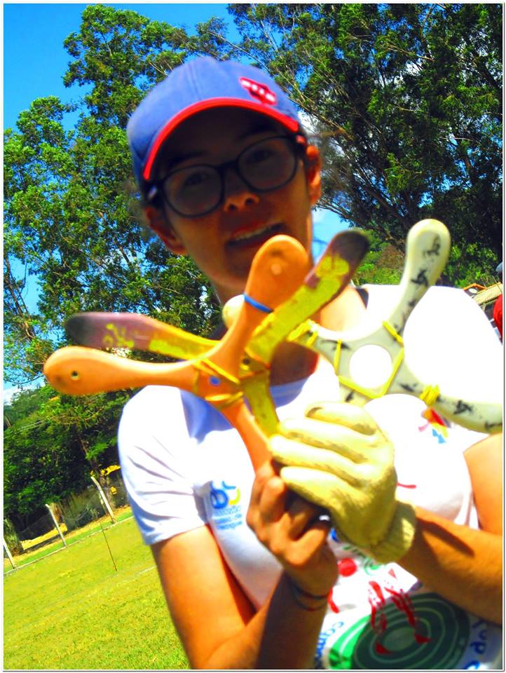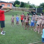Precisão – Você joga o bumerangue e ele tem que passar dos 20 metros e voltar e você tem que deixar ele cair no alvo pintado no chão, quanto mais perto do centro, maior sua pontuação.