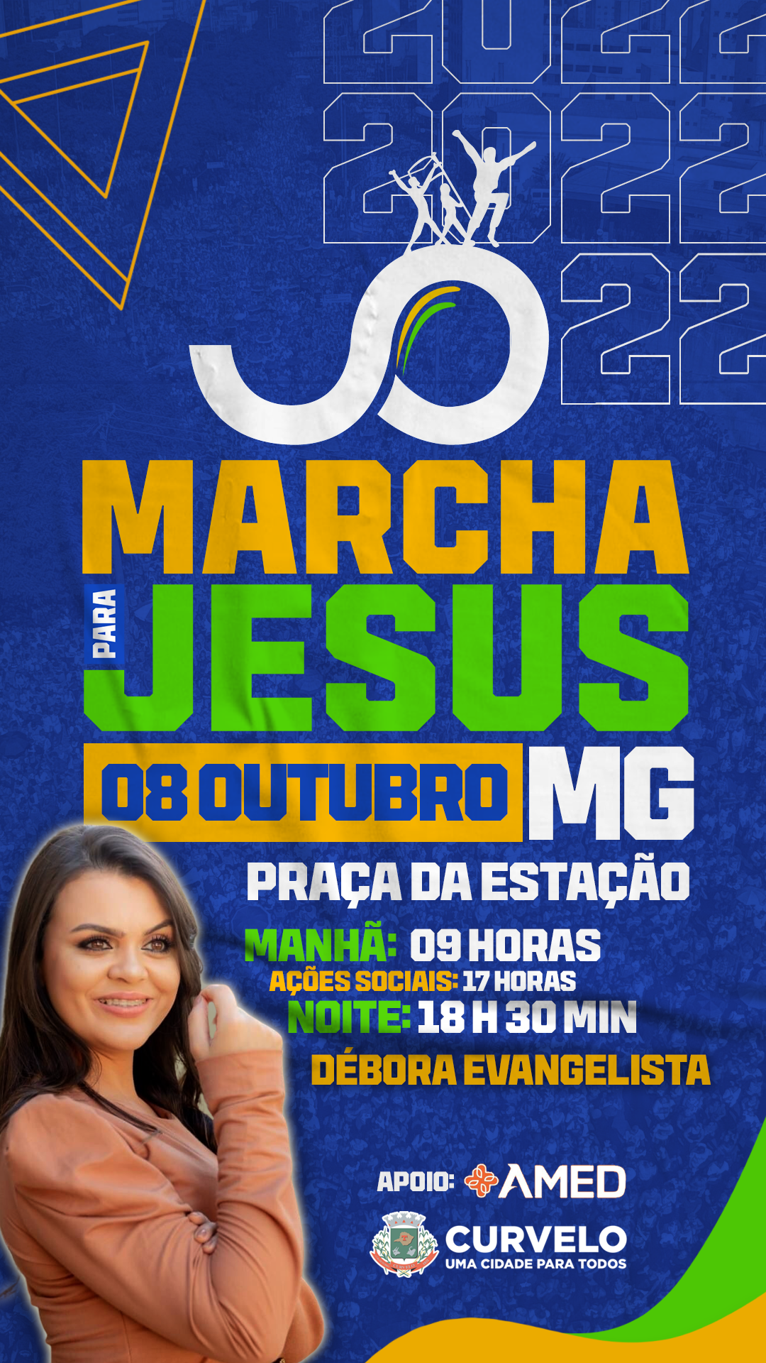 As igrejas evangélicas de Curvelo se reúnem para promover a 2ª Marcha para Jesus. Em 2014 a Marcha foi sucesso e agora em 2015 a organização preparou algo especial com participações de artistas do meio gospel, dança, teatro, palavra de Deus e muito mais.