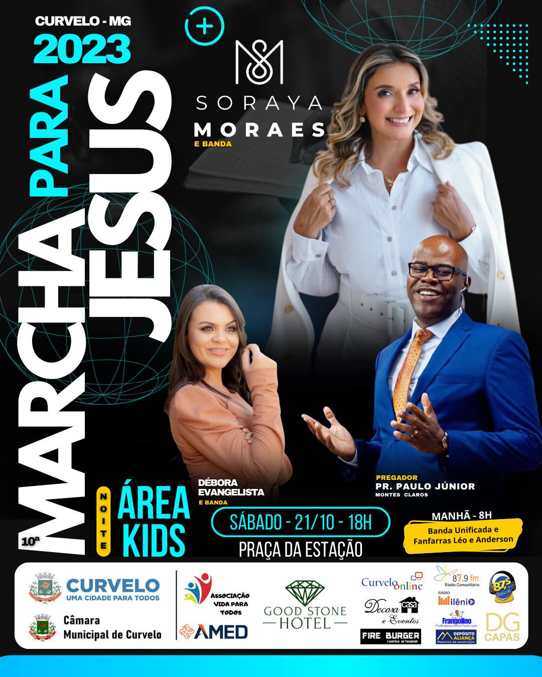 A 10ª Marcha para Jesus marcada para dia 21 de outubro de 2023 a partir das 08:00 horas terá como atrações a Banda Unificada, Marcha com uma super fanfarra, oração e louvor. A noite, a partir das 18 horas tem apresentação da Cantora Soraya Moraes, Débora Evangelista e pregação do o pastor Paulo Junior de Montes Claros.
