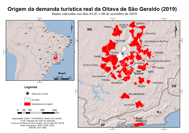 FERNANDES, Maria Lúcia S. PESQUISA DE PERFIL DA DEMANDA TURÍSTICA REAL DA OITAVA DE SÃO GERALDO, EM CURVELO-MG (2019). Relatório Simplificado. Curvelo, 2020.